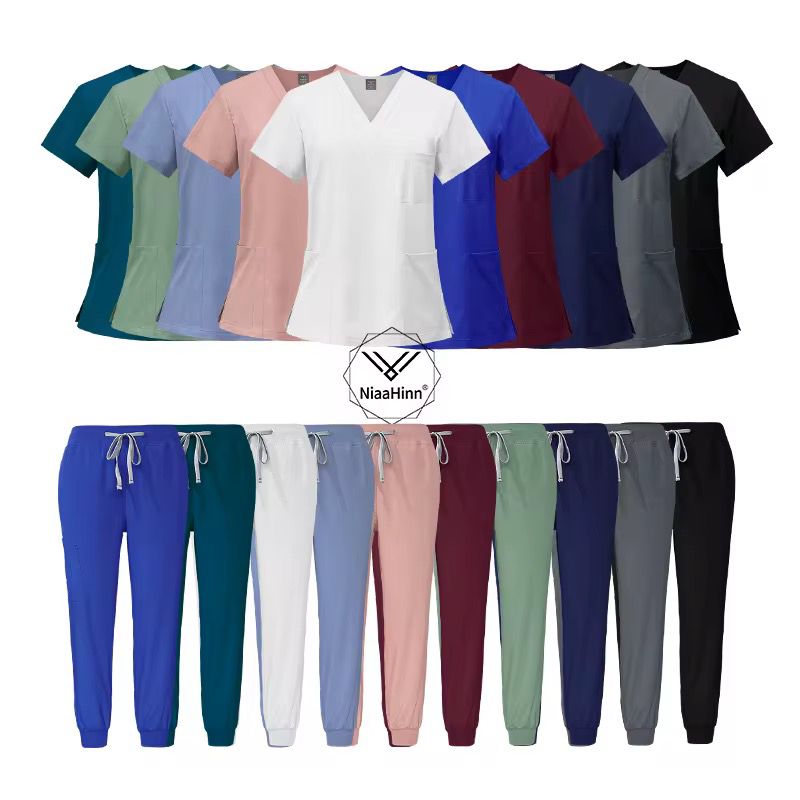 Women’s Scrub Set — Comfortable, Stylish, and Functional This women’s scrub set is designed for healthcare professionals who need dependable comfort and style throughout long shifts. Featuring a flattering fit and breathable fabric, these scrubs balance functionality with a polished, professional look. Key Features Flattering V-neck top: Modern cut with shaping for a feminine fit. Ample storage: Chest pocket on the top plus side pockets on the pants for everyday essentials. Comfort-focused design: Elastic waistband with drawstring for a secure, adjustable fit. Easy care: Wrinkle-resistant, machine-washable fabric designed to hold color and shape after repeated washes. Professional style: Sleek design suitable for nurses, doctors, and all medical staff. Color options: Available in multiple professional and vibrant colors to match your preference. Specs Material: Durable yet soft poly/cotton blend Top: V-neck cut with chest pocket Pants: Straight-leg design with elastic waistband and drawstring Fit: Tailored fit to ensure comfort and mobility Sizes: Wide range of sizes available This women’s medical scrub set delivers comfort, durability, and a professional look — perfect for any healthcare setting.
